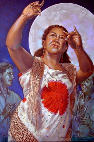 to many extended stays in Andalusia in Southern Spain and many local friendships. These paintings portray a side of Flamenco not often seen by foreign